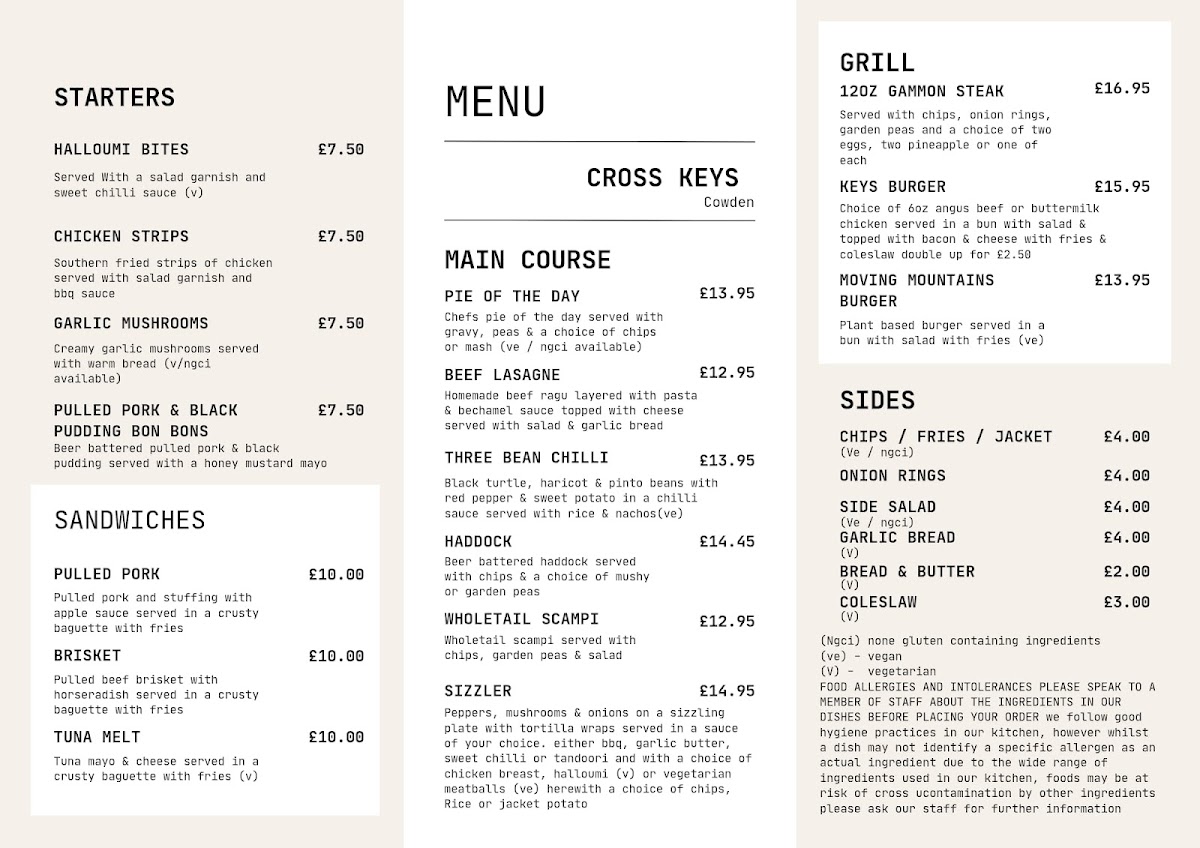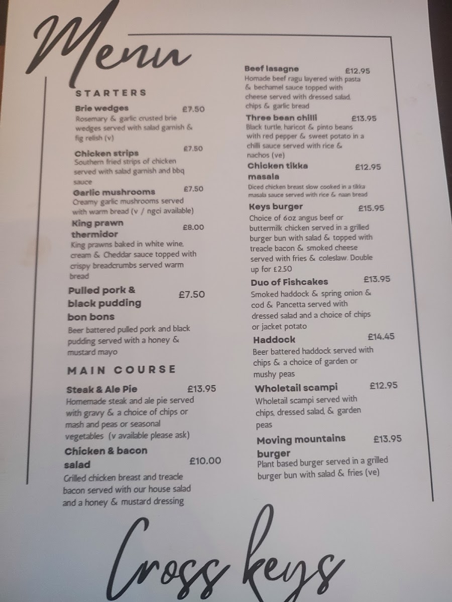 Cross Keys Bar & Restaurant Menu